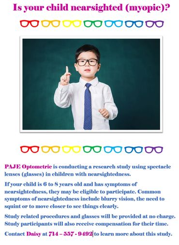 Children 6-7: We are conducting a research study using spectacle lenses (glasses) in children with nearsightedness